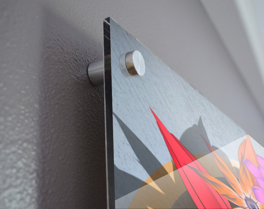 Impression sur acrylique avec entretoises ( cylindres métalliques )